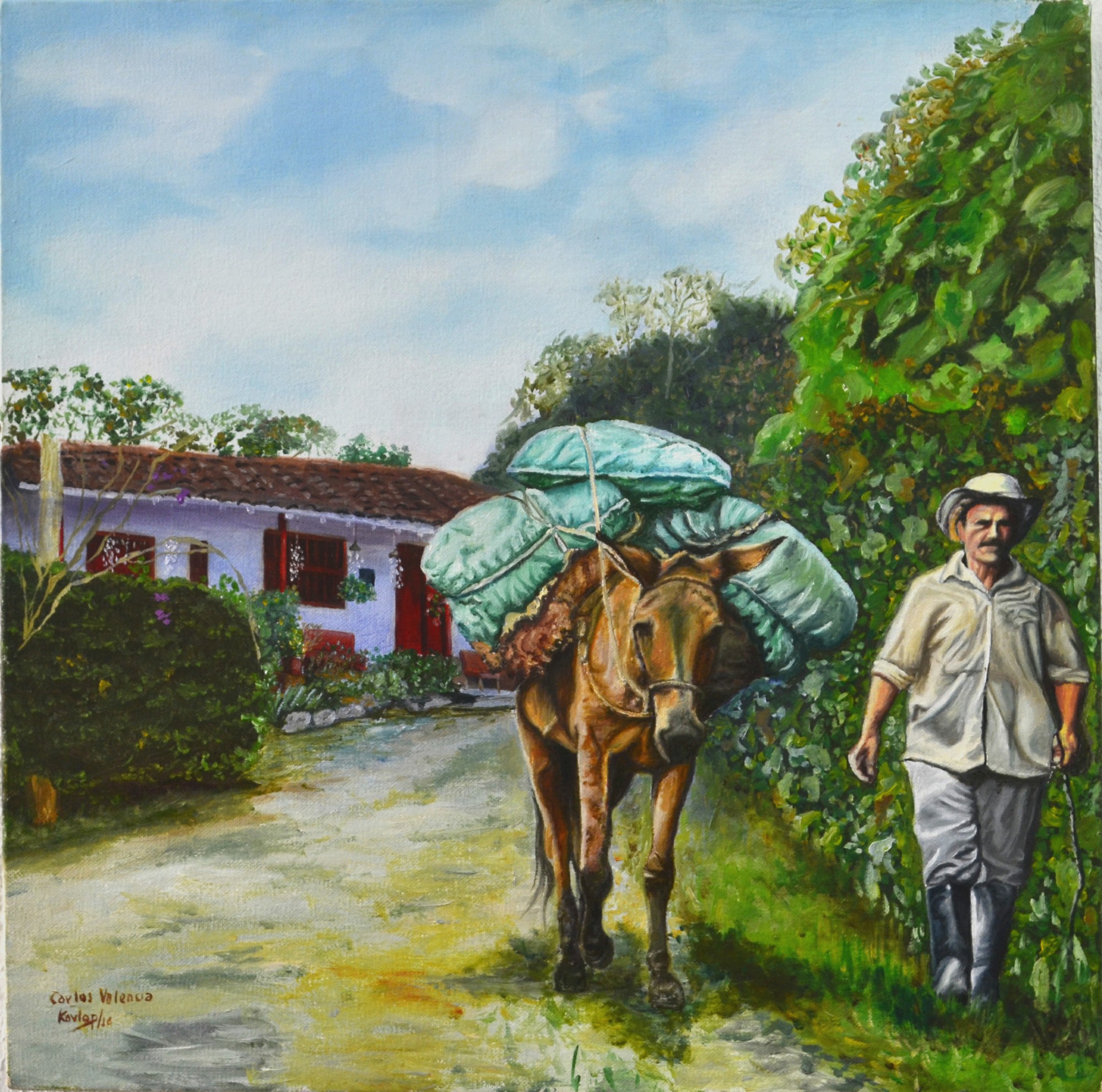 Born in Manizales, Colombia in 1963, Carlos Valencia, a self-taught painter has mastered oil on canvas. An Economist by training who spent many years working at a multinational company, his passion always has been painting. So, he devoted himself to studying and learning using the internet and all literature available. He investigated painting and drawing techniques, styles, theory of color, and history of the universal painting. He also learned from his favorite painters who guided his style until he found his own. After experimenting with the spatula, pop art, expressionism and other styles, he found his path within the figurative and costumbrista style (illustrating everyday life). In 2014, after thinking about it for so long, he decided to quit his job in foreign trade and follow his passion. Since then he has dedicated himself to creating beautiful paintings recreating popular customs of his lovely Colombia.