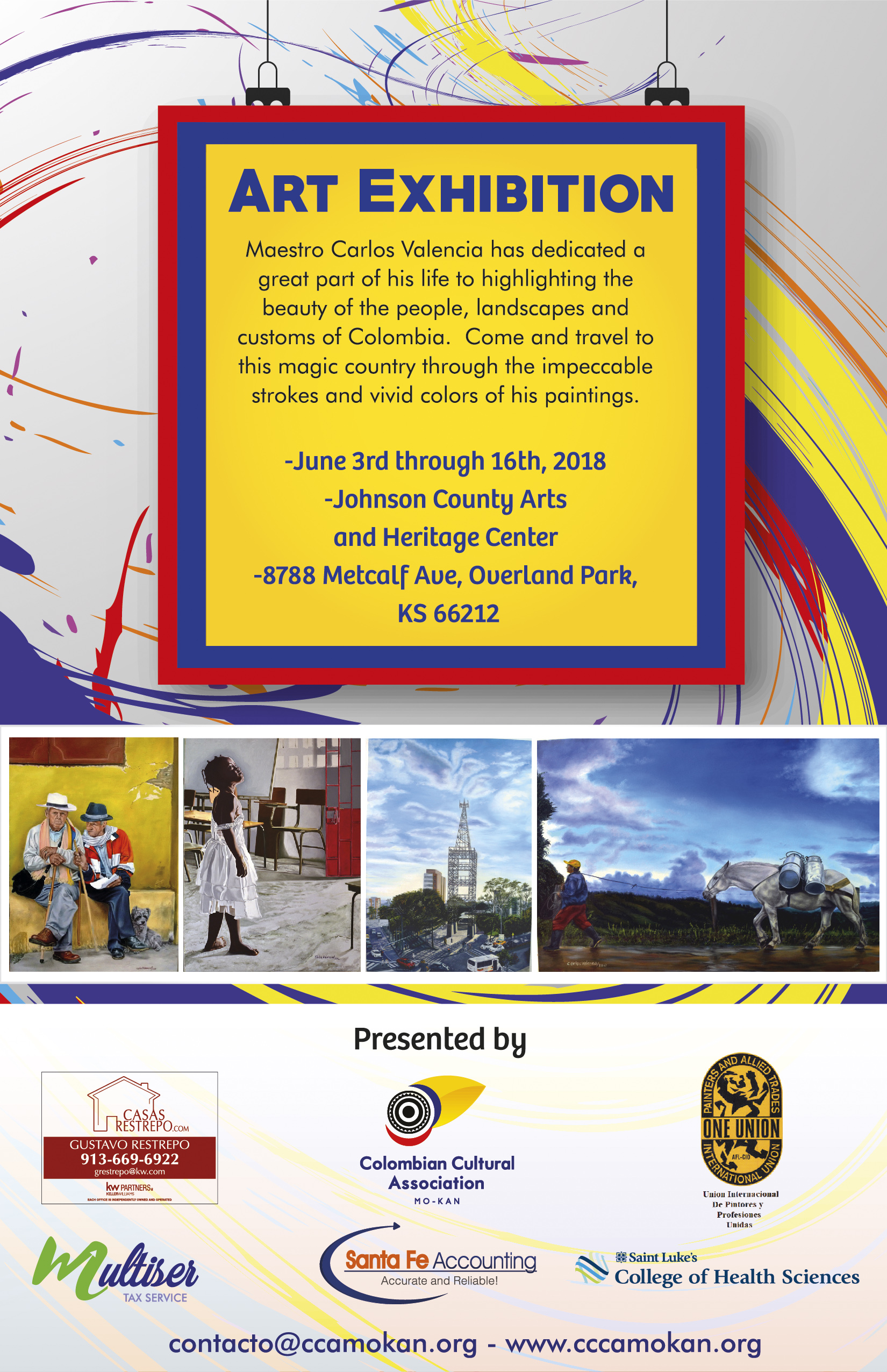 For few days, starting on June 3, you can enjoy incredible works of art by the Maestro Carlos Valencia, who has dedicated a great part of his life to highlighting the beauty of the people, landscapes and customs of Colombia. Come and travel to this magic country through the impeccable strokes and vivid colors of his paintings.